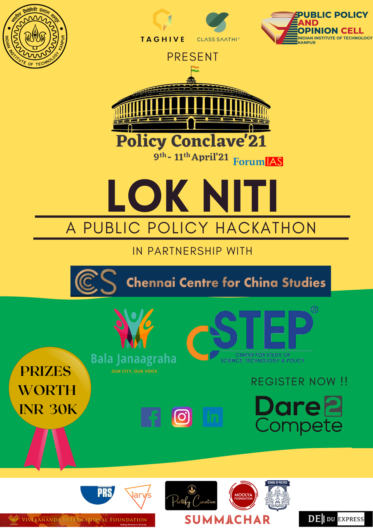 CSTEP partnered with Public Policy and Opinion Cell, IIT Kanpur, for Lok Niti, a public policy hackathon. The event was held from 9 April to 11 April 2021 as part of the third edition of IIT Kanpur’s annual flagship event Policy Conclave.